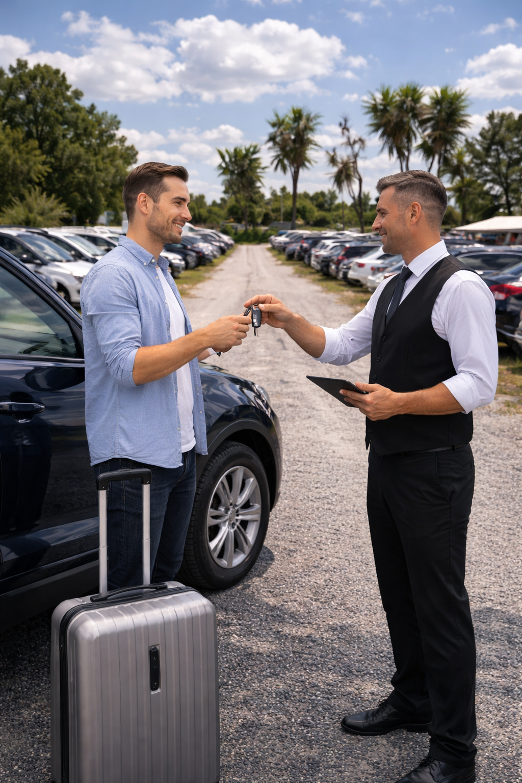 Wenn Sie es besonders komfortabel mögen, ist unser Valet-Parking BER die perfekte Wahl. Anstatt Zeit mit der Parkplatzsuche zu verbringen, fahren Sie direkt zum Terminal, wo unser geschultes Personal Ihr Fahrzeug in Empfang nimmt. Ihr Auto wird sicher auf unserem BER Parkplatz geparkt, während Sie direkt zum Check-in gehen können. Nach Ihrer Rückkehr wartet Ihr Auto bereits am Terminal auf Sie – einsteigen und losfahren. Dieses Parken am BER Flughafen ist besonders bei Geschäftsreisenden und Vielreisenden beliebt, die keine Zeit verlieren möchten und eine bequeme, stressfreie Parklösung bevorzugen.
